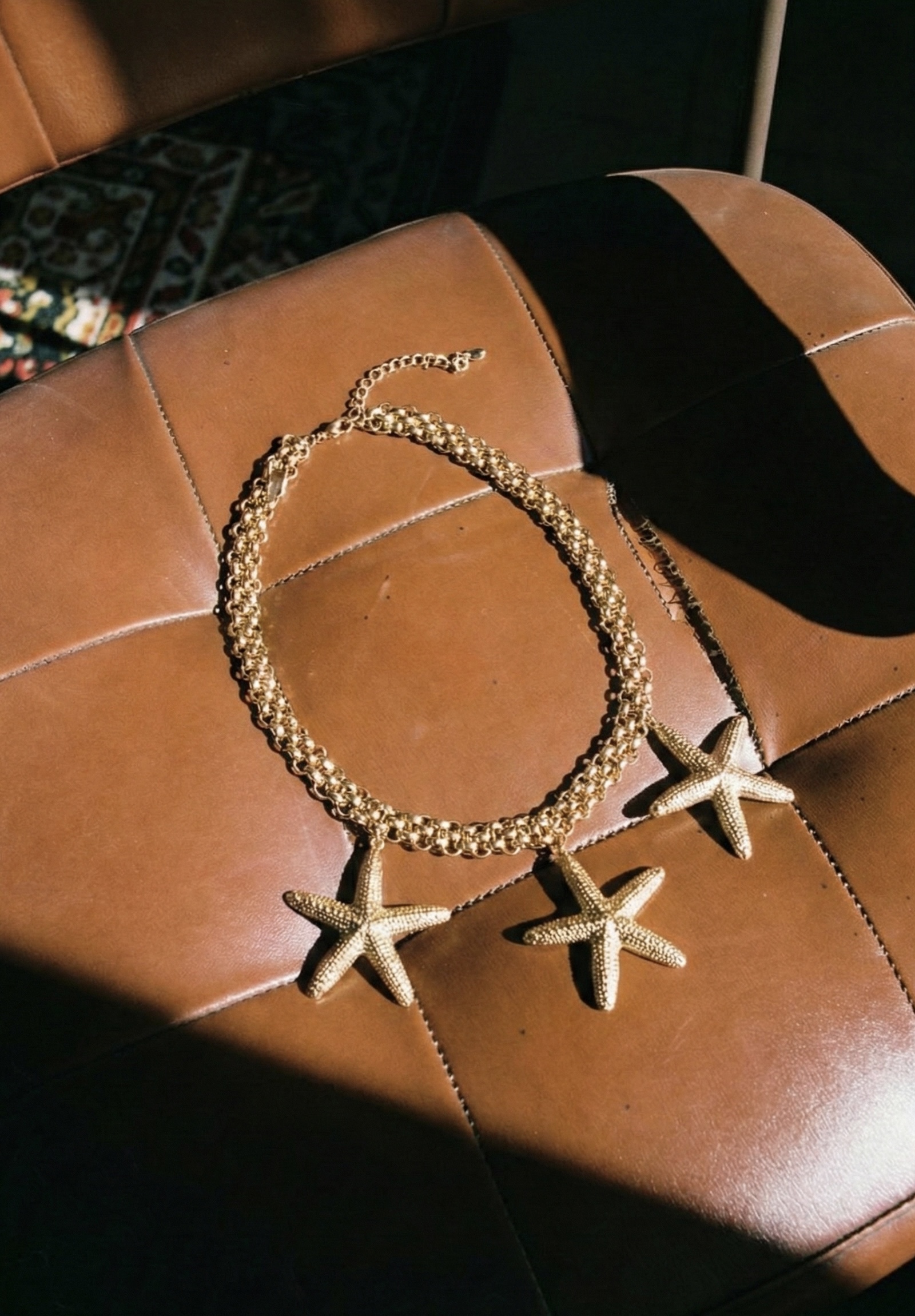 Únete a la última tendecia de este verano con este collar de cadena gruesa adornado con tres delicadas estrellas de mar, ideal para quienes buscan un accesorio moderno, elegante y lleno de personalidad. Su diseño llamativo lo convierte en la pieza perfecta para usar tanto en looks casuales como en ocasiones especiales.