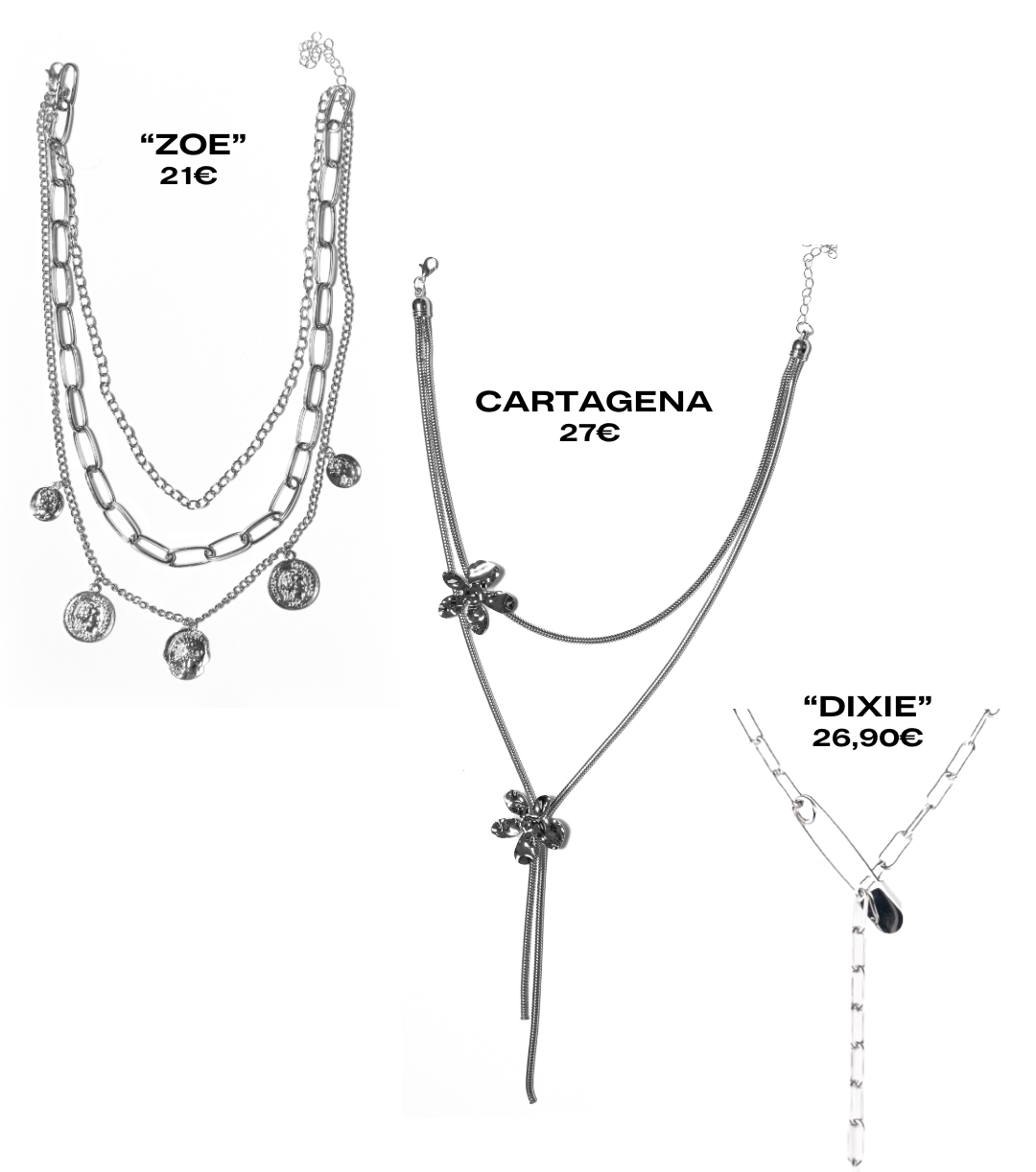Pack 3 collares en color plata.